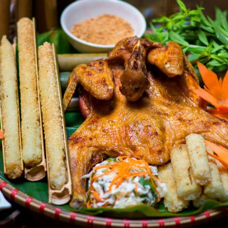 Gà nướng, hay còn gọi là “Gà sa lửa”, là đặc sản không thể thiếu ở Gia Lai. Gà được tẩm ướp gia vị núi rừng đặc trưng rồi nướng trên bếp than. Lớp da vàng giòn, thịt chín mềm, mọng nước và thấm đẫm hương thơm của các loại gia vị, mang lại bữa ăn ấm cúng và đậm đà.