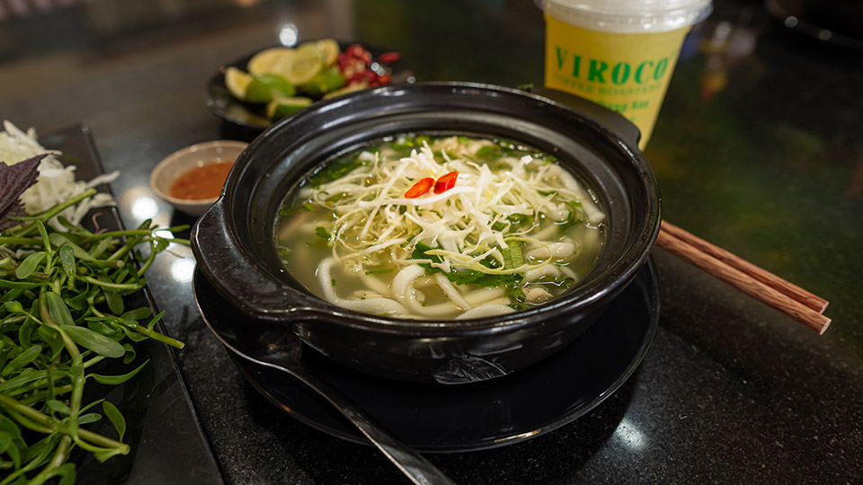 Phần rau thơm tươi như hành lá, ngò gai thường được rắc lên khi tắt bếp, giúp giữ nguyên mùi hương tươi mới và vị giòn của rau. Nhờ nồi đá giữ nhiệt cực tốt, bát bánh canh sẽ giữ được độ nóng lâu hơn rất nhiều so với bát thông thường. Điều này không chỉ giúp thực khách có thể thưởng thức món ăn nóng sốt từ đầu đến cuối, mà còn cho phép các gia vị trong nước dùng và thịt cá có thêm thời gian để hòa quyện sâu sắc hơn, tạo nên một hương vị đậm đà, tròn vị. Mỗi đũa bánh canh là một sự kết hợp hoàn hảo giữa độ nóng, hương thơm và vị ngon.