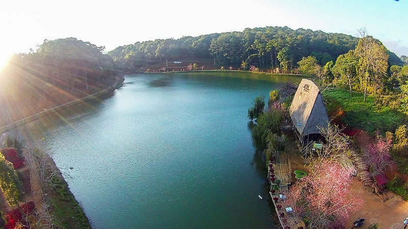 Nếu bạn muốn tìm một không gian nhẹ nhàng, lãng mạn hơn để thư giãn, hãy ghé thăm Hồ Đăk Ke và Hồ Đam Bri. Dù không quá lớn, nhưng hai hồ nước này lại mang một vẻ đẹp thơ mộng, thanh bình đến lạ kỳ. Nằm gần trung tâm thị trấn, chúng dễ dàng tiếp cận và là nơi lý tưởng để đi bộ, đạp xe hoặc đơn giản là ngồi ngắm cảnh. Xung quanh hồ là thảm thực vật phong phú, đặc biệt là những thảm hoa dại khoe sắc theo mùa, tạo nên một bức tranh thiên nhiên hài hòa, dịu dàng và đầy màu sắc. Đây là địa điểm tuyệt vời để bạn ngồi ngắm cảnh hoàng hôn, đọc sách, picnic nhẹ nhàng hoặc đơn giản là hít thở không khí trong lành, xua tan đi mọi mệt mỏi và lo âu. Vẻ đẹp của những hồ nước này sẽ làm phong phú thêm trải nghiệm của bạn khi Khám phá Măng Đen.