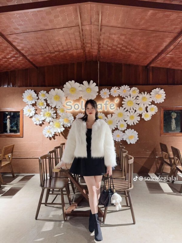 Là một trong những quán Cafe sân vườn Pleiku được nhiều người yêu thích, Sol Cafe gây ấn tượng mạnh với không gian mở bốn bề, chan hòa cùng thiên nhiên. Quán được bao quanh bởi vô vàn cây xanh, hoa lá và những căn nhà gỗ mộc mạc, tạo nên một bức tranh phong cảnh hữu tình. Đặc biệt, vào buổi tối, khi những ánh đèn ấm áp bắt đầu thắp sáng, Sol Cafe càng trở nên lung linh, lãng mạn hơn bao giờ hết. Từ đây, bạn có thể phóng tầm mắt ngắm nhìn toàn cảnh thung lũng và thành phố Pleiku về đêm, một trải nghiệm thực sự thơ mộng và khó quên. Quán còn có những kệ sách nhỏ xinh và nhiều cây trang trí, mang đến cảm giác thư thái, dễ chịu. Menu của Sol Cafe rất đa dạng, từ các loại cà phê truyền thống, trà sữa, nước ép tươi mát, đến đá xay và nhiều loại bánh mặn, bánh ngọt hấp dẫn như bánh bông lan trứng muối, mousse trái cây hay tiramisu.