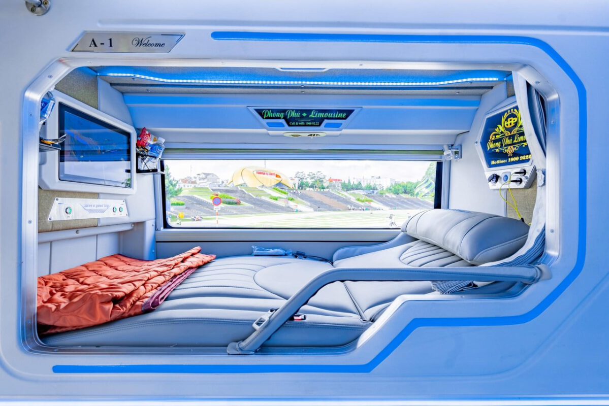 - Tiện ích đầy đủ: Với giường nằm êm ái, wifi, màn hình LCD cá nhân, cổng sạc, nước uống và khăn lạnh, mọi nhu cầu của bạn đều được đáp ứng.